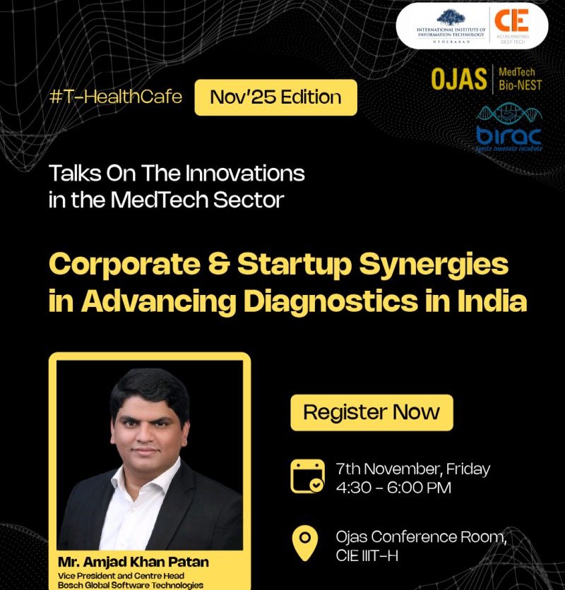 We’re excited to host Mr. Amjad Khan Patan, Head of Business Development at Bosch India, as our speaker for the upcoming T-Health Café. With 20+ years of experience in MedTech and corporate–startup collaboration, he will share insights on “Corporate and Startup Synergies in Advancing Diagnostics in India.”