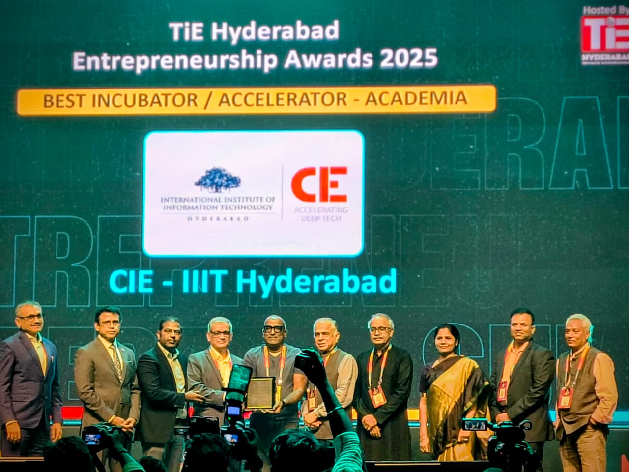 We are delighted to announce that CIE – IIIT Hyderabad has been awarded the prestigious “Best Academic Incubator in Hyderabad” by TiE Hyderabad. This recognition underscores CIE’s continued contribution to nurturing deep-tech innovation, supporting founders, and transforming ideas into scalable ventures.